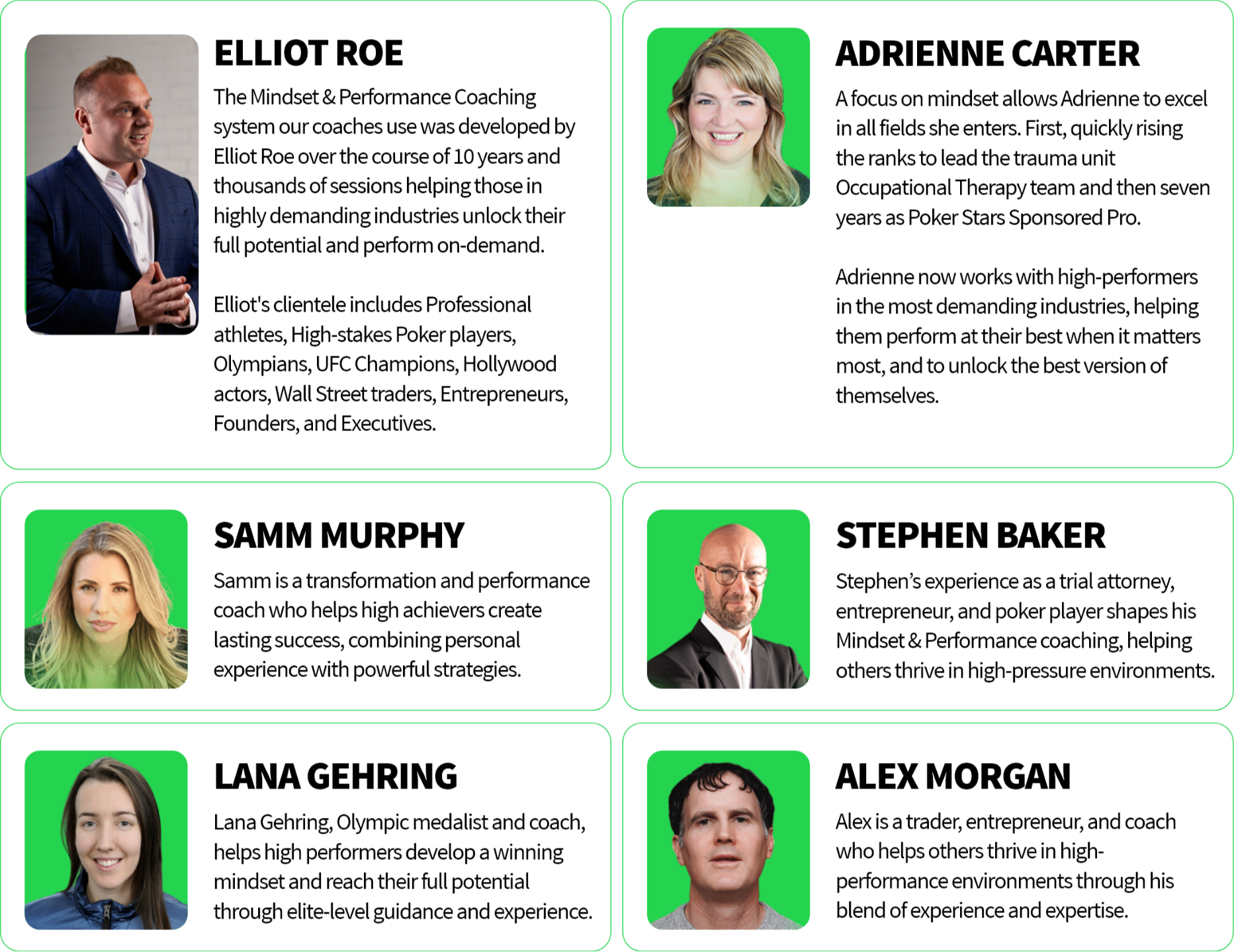 “Working with Adrienne has been a game-changer for me. By creating a space where I felt truly heard and empowered, she enabled me to regain the confidence needed to take decisive steps in my professional and personal journey. Her approach, which combines practical strategies with a genuine, empathetic understanding, helped me regain the confidence I needed to play poker at the highest level and take the risks necessary to actualize my potential. She’s incredibly attentive, always willing to go the extra mile, and she adapts her coaching style to fit her clients perfectly. I can't recommend her highly enough!”