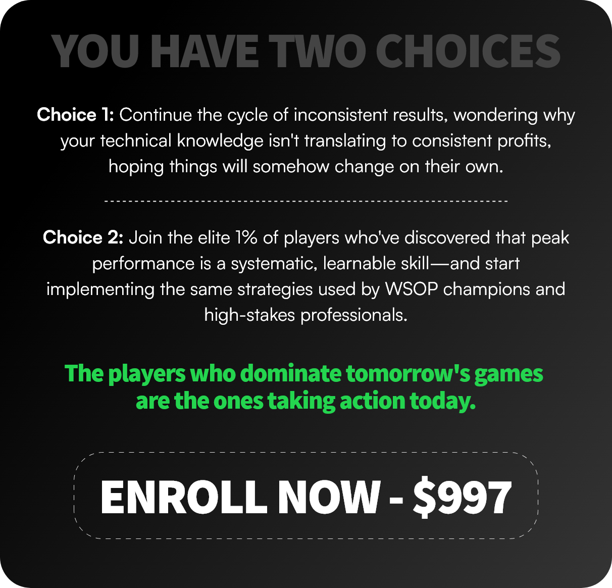 You've seen it countless times: players with similar technical skills getting vastly different results. One consistently moves up in stakes while the other remains stuck. One performs under pressure while the other crumbles in big moments.